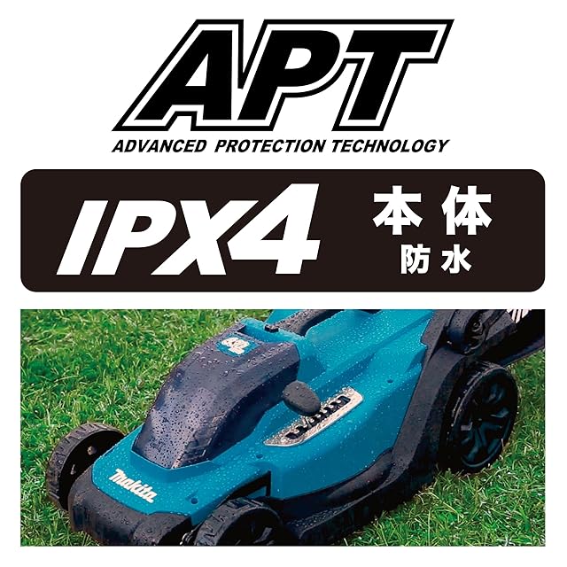 ワンタッチ固定&解除レバー式ハンドル固定。収納時の折り畳みが素早く行える。刈高調整がしやすい横長レバー形状。見やすい位置決め溝で刈高調整が簡単。約20~75mmの範囲で8段階に設定可能。高い防水性能※。防滴・防じん「アプト」&防水保護等級「IPX4」※粉じんや水による影響を受けにくいように 設計されていますが、故障しないことをするものではありません。バッテリを装着した場合は、本体側の保護等級に準じます。