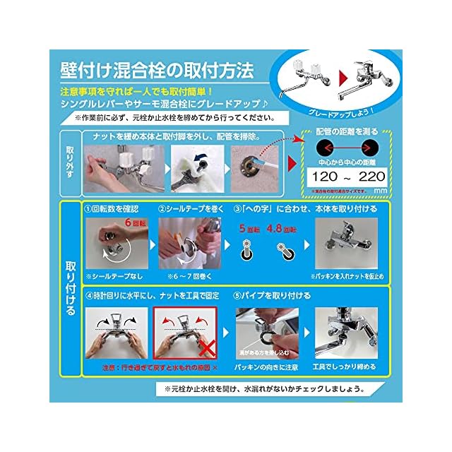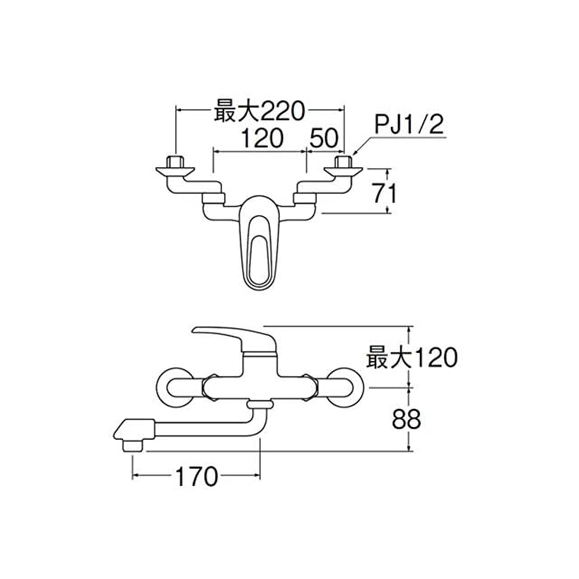 取付穴径:PJ1/2 取り付け可能な配管ピッチ:120~220mm