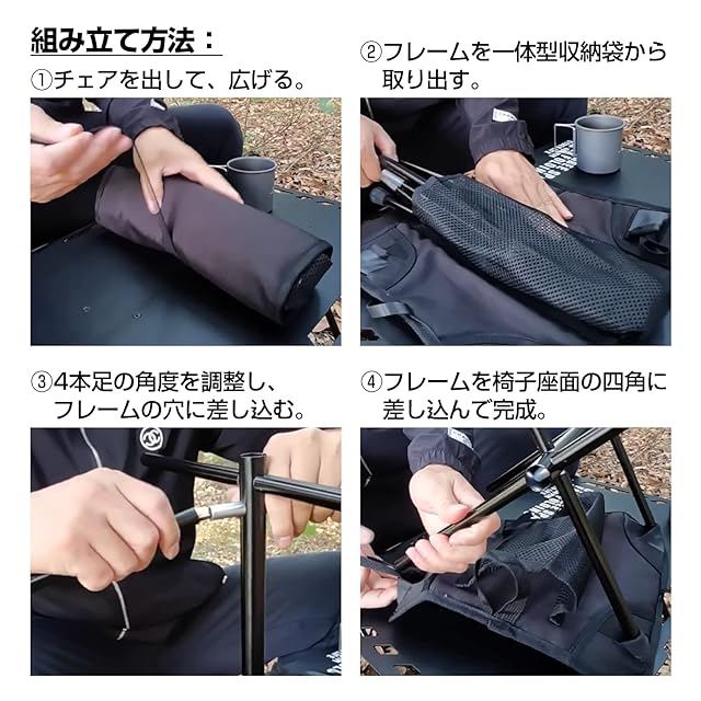 【耐荷重約100㎏・長持ち】椅子座面は丈夫で耐久性のある600Dオックスフォード生地を採用し、フレーム部分は十分な強度を有しているA6061アルミニウム合金で作られています。耐荷重およそ100㎏、頑丈で安定性のあるアウトドアチェア!