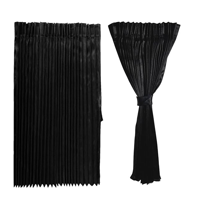 ZATOOTO トラック カーテン トラック用品 大型 中型 仮眠カーテン 遮光力 プリーツ 2枚入り 巾240㎝x丈90㎝ カー用品 フック付き 車内 車中泊 YWLYCT85-BK | Trend Design BASE店