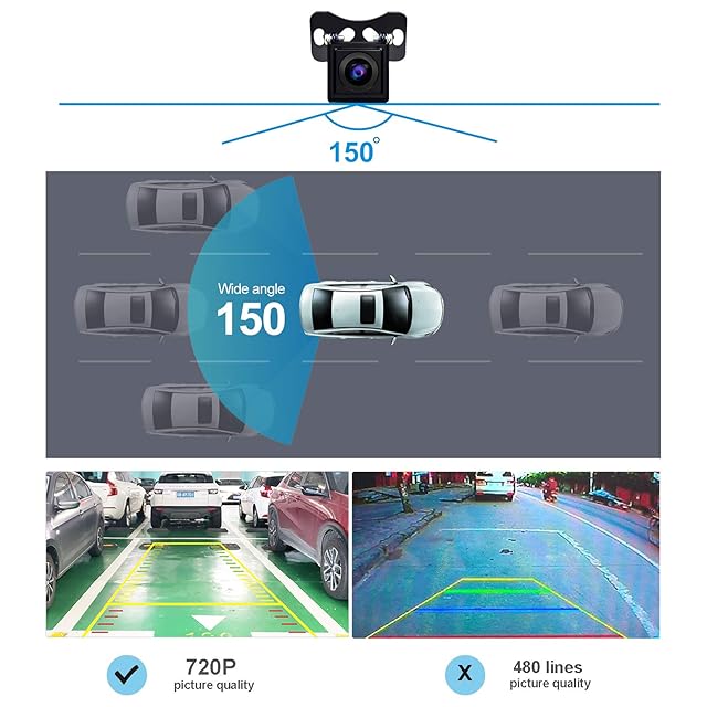 720PHDビデオ信号を出力できるHD720Pリアビューバックアップパーキングアシストカメラ。 特別な配線設計とシステムファームウェアのサポートにより、ユーザーは車両が前進しているときにライブバックミラーを見ることができます。