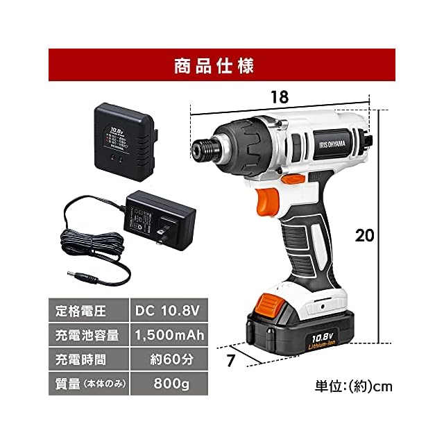 アイリスオーヤマ 充電式 インパクトドライバー 10.8V コードレス バッテリー・充電器付 トルク80N・m 厚みのある材質の穴あけネジ締めにも使いやすい JID80 【10.8V共通バッテリーシリーズ】 | Trend Design BASE店