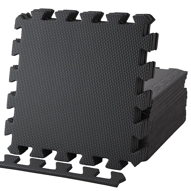 Geum EVA ジョイントマット エクササイズ/トレーニング用 30x30x1.0cm 18枚セット 床保護 キズ防止 防音(サイドパーツ18辺付き) (ブラック) Geum006 | Trend Design BASE店