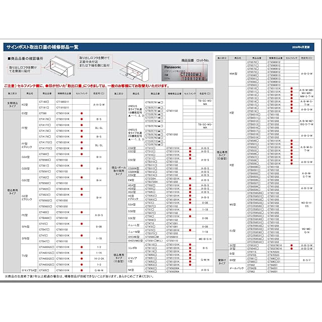 パナソニック Panasonic【CT651101L】ポスト1Bタイプ用 取出口ふた (CT651101Kの後継品)
