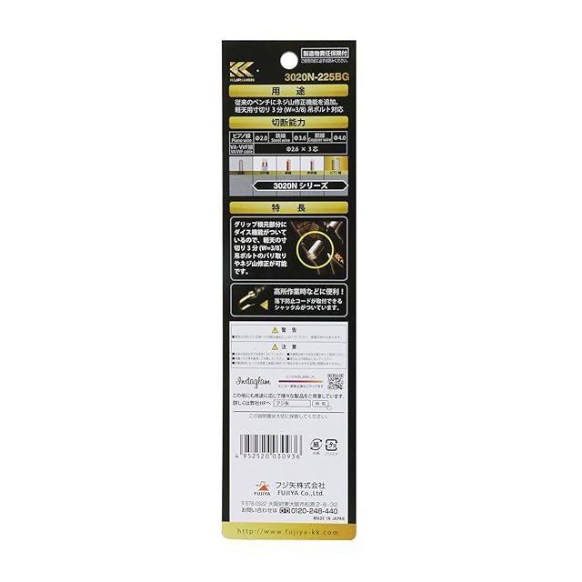 商品名:フジ矢(Fujiya) 偏心パワーペンチ 黒金 バリ処理機能付き 225mm 3020N-225BG