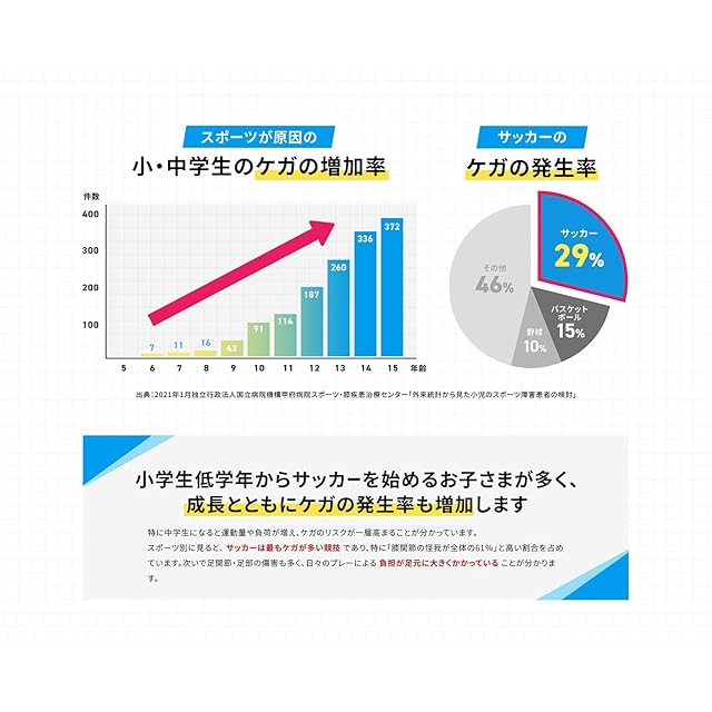 成長期の足、知らないうちに負担をかけていませんか?小学校低学年からサッカーを始めるお子さまが多く、成長とともにケガの発生率も増加します。成長する足に、今できるサポートを。動きやすさと衝撃ケアを考えたインソール選びが、大切な一歩に繋がります。