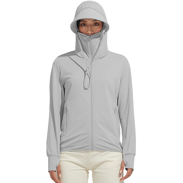 [JIOYIEO] ラッシュガード レディース 春夏 薄手 長袖 軽量 水着【UVカット&UPF50+】フード付き 紫外線対策 日焼け対策ウェア 冷感素材 吸水 速乾 アウトドア 海 釣り ウォーキング パーカー 男女兼用 (M, グレー) | Trend Design BASE店