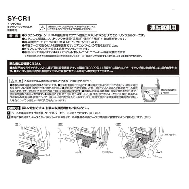 商品タイプ:01)ドリンクホルダー運転席用 SY-CR1