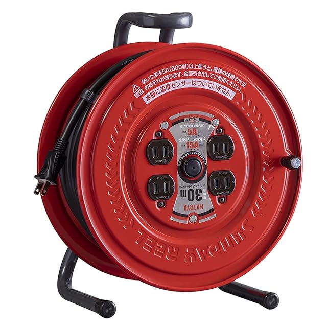 ハタヤ (HATAYA) コードリール 屋内用 100V型 コード30m 太さ1.25㎟ 標準型 コンセント4個 コンセント防塵キャップ 前面フラットパネル 家庭用 工場用 建設現場 サンデーリール S-30 | Trend Design BASE店