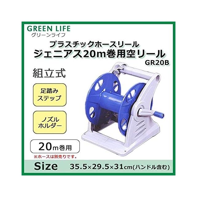商品名:グリーンライフ ホースリール 20m巻用 20m 足踏みステップ付で巻き取りやすい ジェニアス GR20B