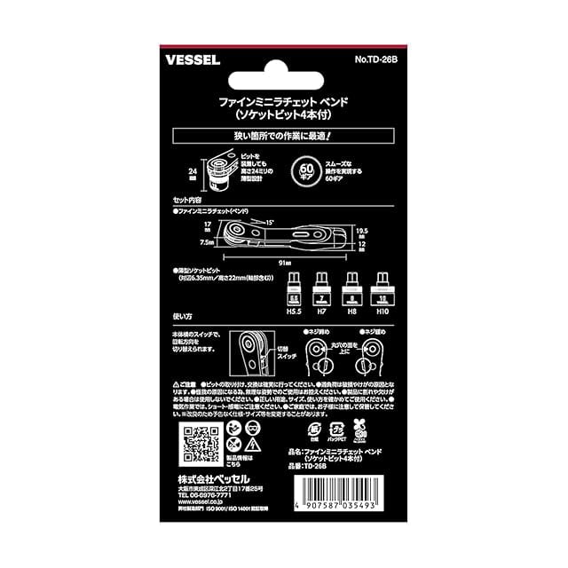 商品名:ベッセル(VESSEL) 極薄 ファインミニラチェットドライバー ベンドタイプ ソケット4本付 TD-26B