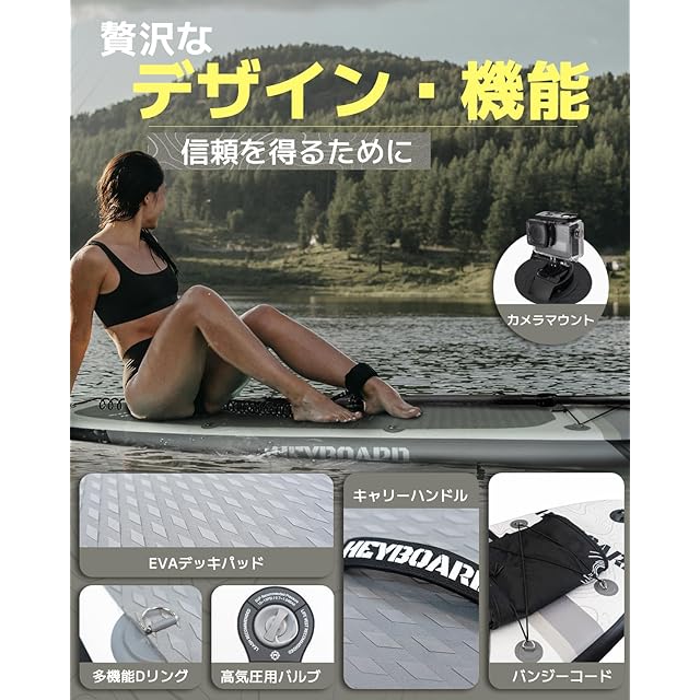 商品名:HeyBoard supボード スタンドアップパドルボード supインフレータブル パドルボード 安定性 滑り止め 初心者 SUPセット 320cm(長さ)×81cm(幅)×15cm(厚さ) Dリング付き(グレー/模様入り)