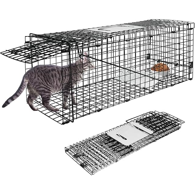 TongWey 捕獲器 踏み板式 野良猫 迷子猫 動物用 トラップ 66×26.5×24cm 保護器 猫の保護器 野良猫 迷子猫 小動物 捕獲器 害獣駆除 農業作物保護 家庭菜園 農業作物 ねこ 猫 安全 かごサイズ 簡単組立 設置 畑 庭 お風呂マット (ブラック) | Trend Design BASE店