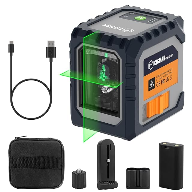 CIGMAN レーザー墨出し器 ミニ型 クロスラインレーザー USB-C充電式電池 モード切り替え不可 自動/手動水平調整 磁気サポート30Mの作業距離 IP54 収納バック付き 日本語取扱説明書 CM-G02 | Trend Design BASE店
