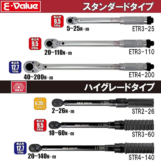 商品名:イーバリュー(E-Value) プレセット型トルクレンチ 差込角 9.5mm 20-110N・m ETR3-110