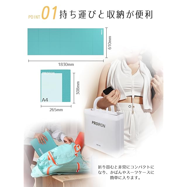 商品名:PROIRON ヨガマット 折りたたみ ストレッチマット 折畳み 183×61cm ターコイズ