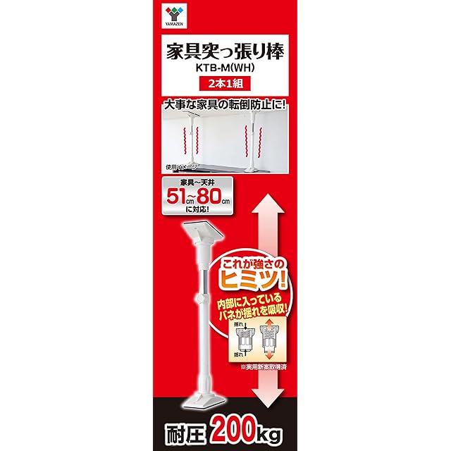 商品名:山善(YAMAZEN) 家具突っ張り棒(長さ51-80cm)2本1組 ホワイト KTB-M(WH)