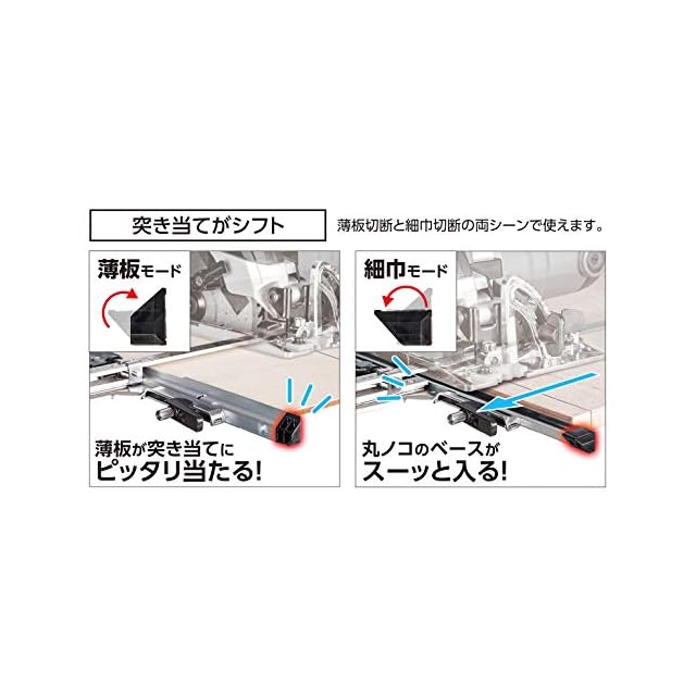 細巾モードは電気丸鋸のベースが隙間に入り込むので細巾切断ができます。