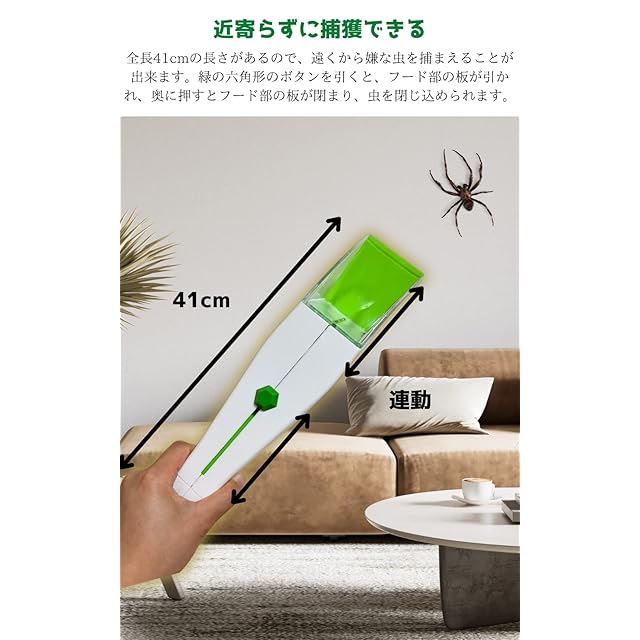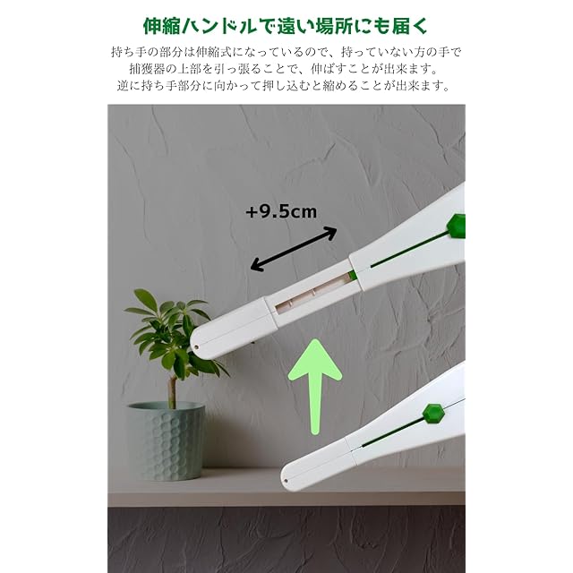 触りたくない虫に大きいフード部を被せ、確実に捉えます。虫を触らずに外に逃がすことができます。