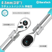 DuraTech ラチェットハンドル は伸縮タイプで全長が調整可能、力加減の調整と収納が非常に便利になります。回転切替レバー付きで自由に方向を切替することができ、手が当たりにくい時にも便利です。90山ギアを採用、送り角度がわずか4度で、細やかで滑らかな動きを実現、振り幅の制限された狭い場所で威力を発揮!各種ボルト・ナット・ネジの締付け、緩め作業できて、車やバイクなどのメンテナンス用、自動車業界に基本的な工具です。機械などの点検や補修工具としても一般産業に広く使用されています。
