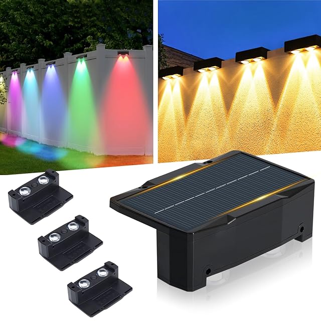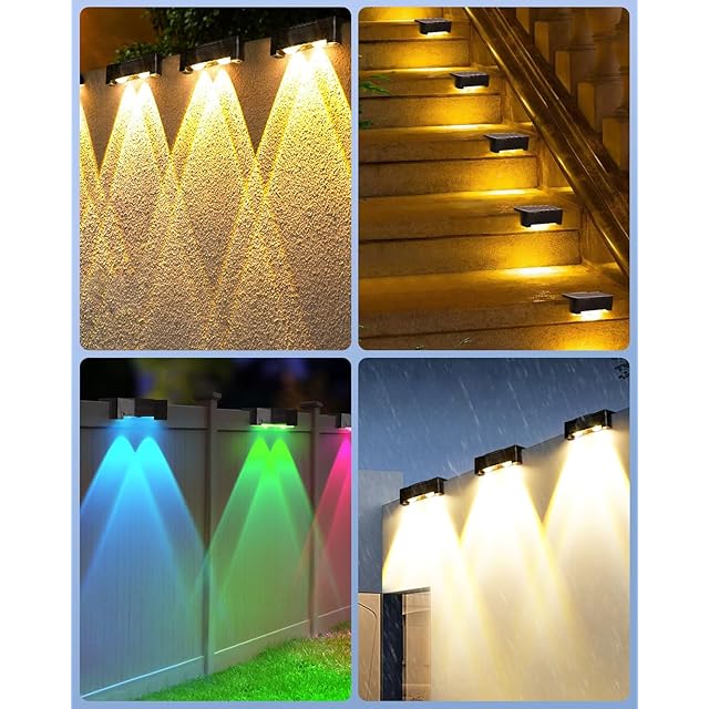 「2025新版高輝度」ソーラーライト 屋外 玄関ライト フェンスライト 7色/暖色 自動点灯 ガーデンライト 明るい LED 表札灯 表示灯 玄関灯 門柱灯 防水 広範囲 フットライト ウォールライト 照明 防犯ライト 取付簡単 庭 階段 通路 バックヤード (「暖色と7色変化式」4個セット)