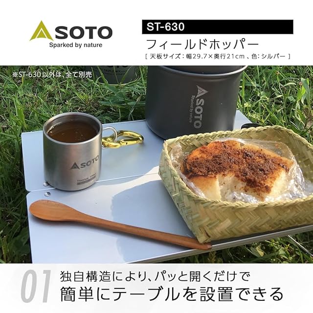 ソト(SOTO) ポップアップソロテーブル フィールドホッパー ST-630 アルミ ロールテーブル ケース付 アウトドア用 折りたたみ式 ソロキャンプに最適 | Trend Design BASE店