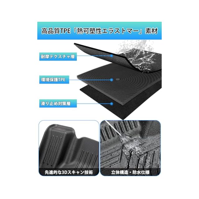 2.【高品質TPE素材】:摩擦性に優れたTPE樹脂素材を採用し、耐汚れと耐摩擦性を実現しました。3D立体構造のお掛けで車が運転している途中でも、飲み物などが溢れっても水やジュースなどはフロアマットの外への侵入を防止します。弊社のマットには防水性&耐摩擦性に優れた、変な匂いも無し、お手入れも楽々!