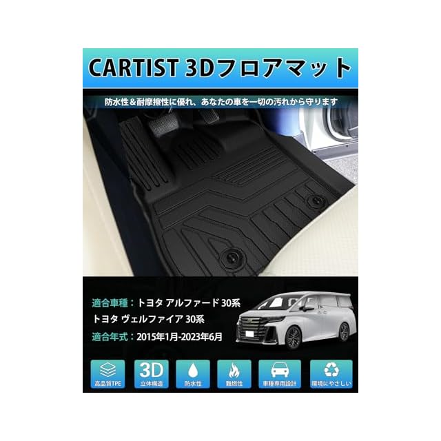 商品名:Cartist アルファード ヴェルファイア 30系 に適用 前期 後期 フロアマット 立体カーマット 3Dフロアマット Alphard VELLFIRE 30 2015-現行 TPE素材 車種専用設計 カスタムパーツ 防水 耐汚れ 取付簡単 運転席&助手席&センターパーツ&2列目 アクセサリー カー用品 4PCSセット