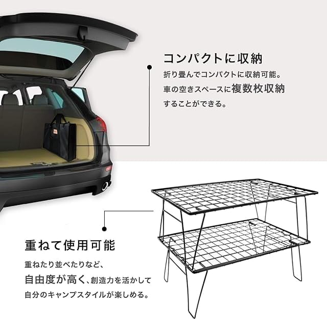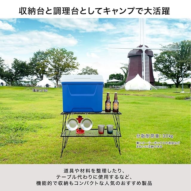 【キャンプで大活躍】 キャンパーの間では、道具や材料を整理しておいたり、テーブル代わりに使用するなど、機能的で収納もコンパクトな人気のおすすめ製品です。