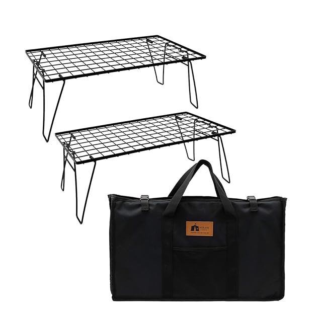 HIBARI フィールドラック キャンピングラック 2個セット 収納ケース付き ブラック キャンプ収納 コンパクト アウトドアワゴン アウトドアテーブル 折りたたみ テーブル ローチェアアウトドア キャンプテーブル (ラック2枚/収納ケース) | Trend Design BASE店