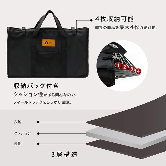 【収納袋付き】 傷や緩みに強い900Dポリエステル製、小物入れや生地の厚めの設計になっております。厚めのクッション入りで、フィールドラックをしっかり守ります。とても便利で長く使えます。