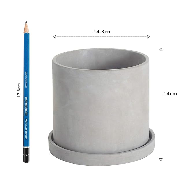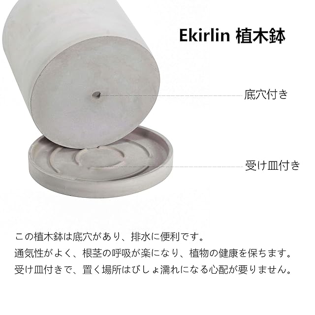 商品名:Ekirlin 植木鉢 セメント 鉢 受け皿付き 観葉植物 円筒形鉢 おしゃれ コンクリート 穴付き プランター 5号 シンプル グレー 14cm