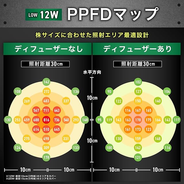 ✅【鉢サイズに合わせて選べる2モデル】プレステラ90や3号鉢等の卓上サイズの株をちょうどよく照らす12Wモデル 5号鉢のような大きな株もしっかり照らせる25Wモデル の2モデルを用意