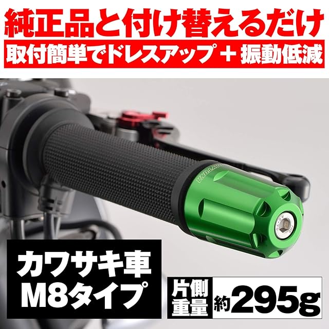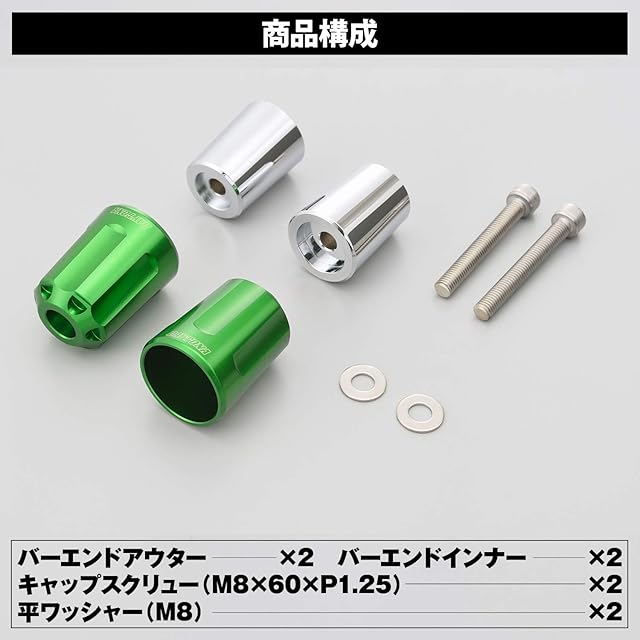 商品名:デイトナ(Daytona) アルミビレット バイク用 バーエンド カワサキ M8タイプ(ZRX1200DAEG Ninja250 など) ヘビーウエイトバーエンド リボルバー グリーン 17268