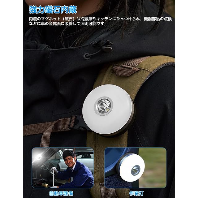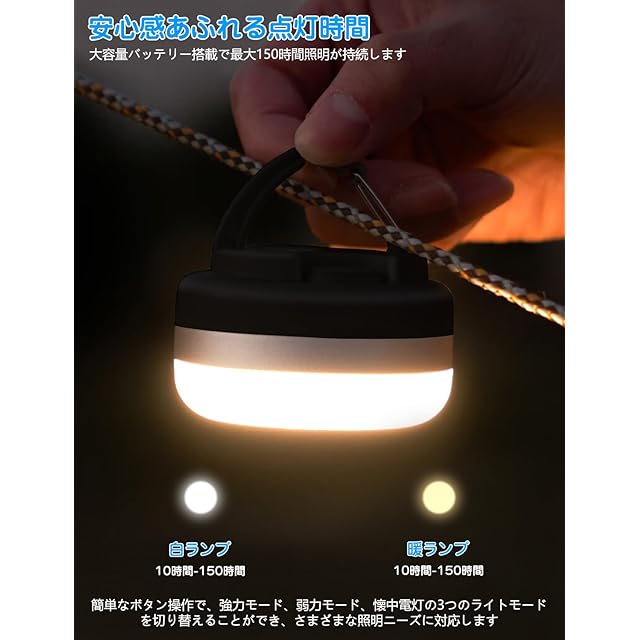 【強力磁石内蔵、軽量小型で携帯便利】ランタン内部には強力磁石内蔵で、冷蔵庫やキッチン、車などの鉄製品表面に吸着可能です。折畳み式フックが頑丈で、屋内のナイトライトやアウトドアキャンプランタンとして使用可能です。90g軽量小型で、携帯便利です。