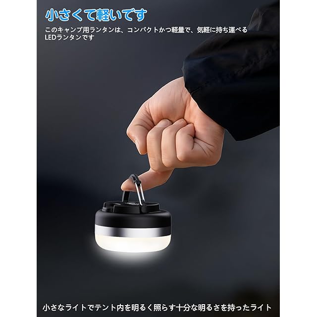 商品名:ランタン ledランタン 電球色 昼白色 Type-C 充電式 小型 暖色 マグネット式付き アウトドア携帯キャンプ用品/応急 防災 停電用… ブラック