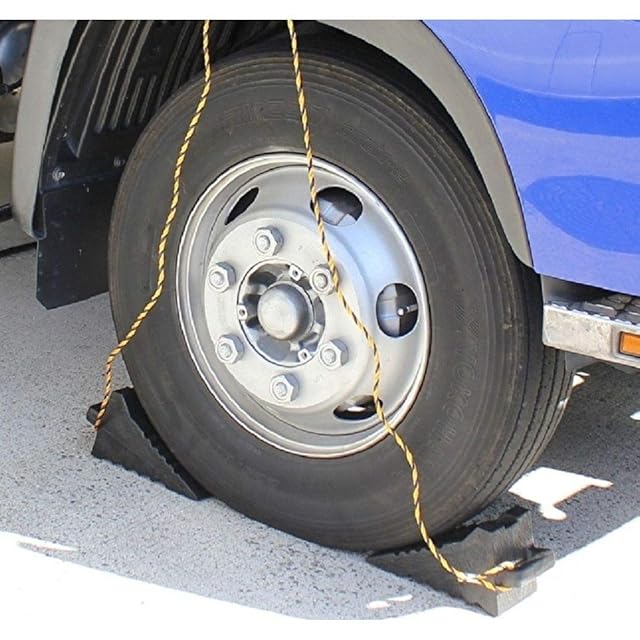 商品名:メルテック(meltec) 車用 タイヤストッパー プラスチック製 ブラック 2個入りFT-25 一般乗用車/トラック全般/農機/建機対応 連結ロープ付 日本製