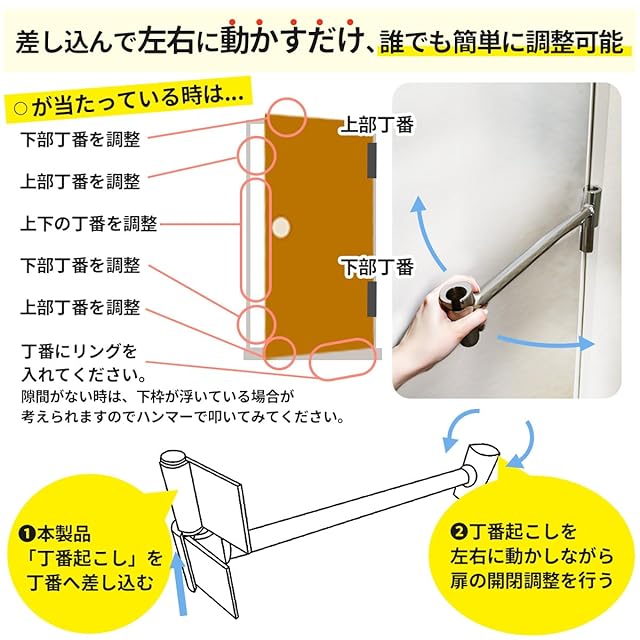 ✅【歪みを簡単調整】ドアのズレや歪みを手軽に補正可能。スムーズな開閉を実現できます。