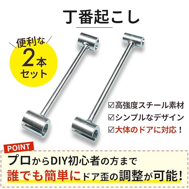 【ドアの歪みを簡単に調整!便利な丁番起こし】ドアのズレや歪みを手軽に補正できる丁番起こし。シンプルで使いやすい設計のため、DIY初心者でも安心して調整できます。耐久性のあるスチール製で長期間の使用にも耐え、家庭やオフィスなど幅広いドアに対応。特別な工具を使わず、この丁番起こしでスムーズな開閉を実現し、快適な空間作りをサポートします。