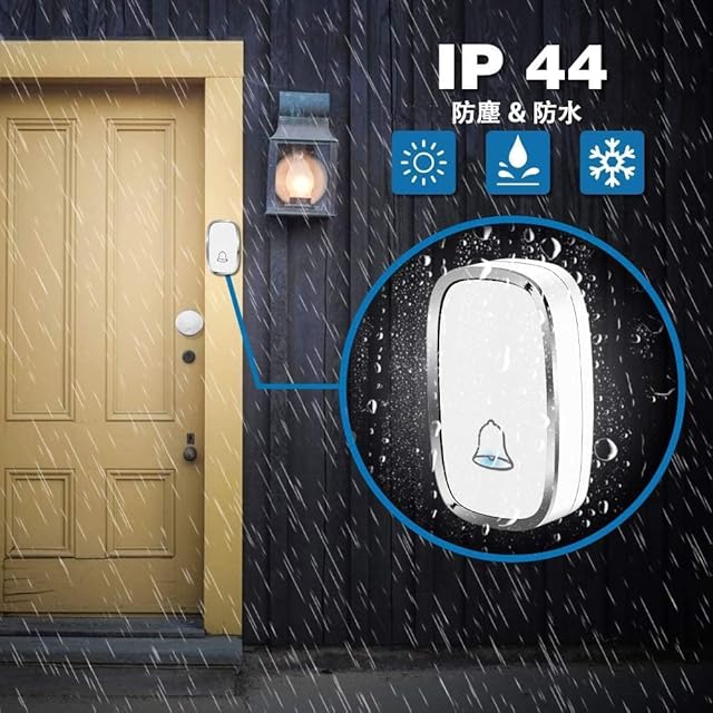 【混信なし&IP44防水】 送信機は固定IDコードにより、電波の妨害や混信などの心配はありません。耐久性と防水設計で、屋外や浴室でも使用できます。