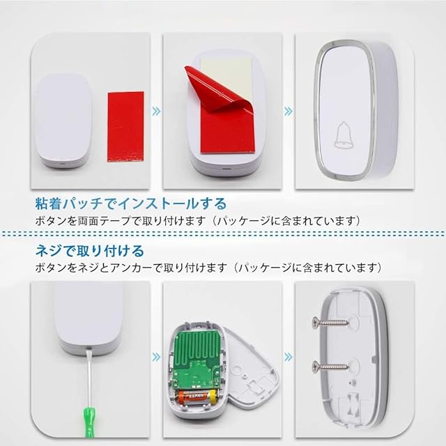 ワイヤレスチャイム 玄関チャイム 呼び鈴 【2020最新版】 介護 飲食店 浴室などに適用 防水 防塵 最高300M無線範囲 ドアベル 36曲選択可能 4段階音量調節 大音量0dB~100dB調整可能 電池式