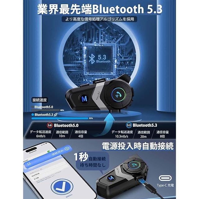 【業界最先端のBluetooth 5.3高性能チップ】S3ヘルメット スピーカーは、最先端の技術Bluetooth 5.3高性能チップを使用して、Bluetooth 5.1またはBluetooth 5.2バイク インカムを使用して、現在の市場と比べて、我々は、低消費電力と接続の安定性を向上させた、Bluetooth 5.3は、遅延音と高速な接続速度されません。【自動ペアリング機能】 S3バイク イヤホンの電源を入れるだけで自動ペアリング機能、人によってはブルートゥースヘッドホンを接続するたびに非常に面倒に感じるかもしれませんが、初回ペアリングの最初の使用後、1秒間電源を入れるだけですぐに携帯電話に接続できます。