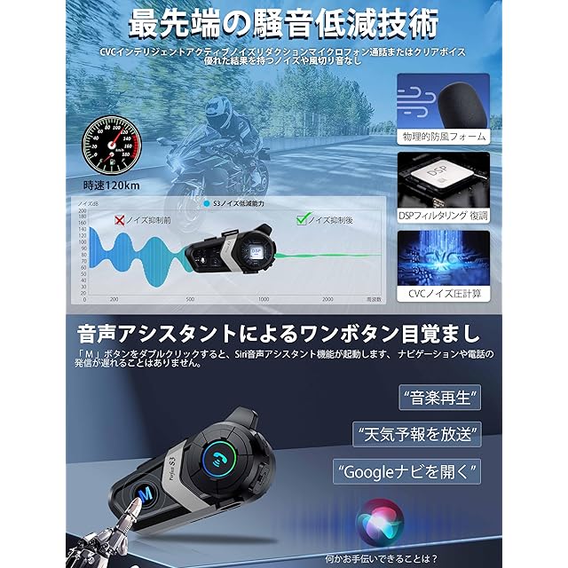 【HD高音質&CVCインテリジェントノイズキャンセリング】このインカム バイクは、ドイツの有名ブランドオリジナルスピーカーキットを採用し、実際の音の最大限の低減 フルパッケージのサウンド充実した低周波は、快適なプロの皮膚感の良い感覚を提供するために、大規模の深さのダイビング度。音楽を聴くと、重低音とフルスペクトラムのバランスが素晴らしく、通話はクリアで透明感のあるサウンドだ。当社のS3バイク用インカムはDSPとCVCとマイクノイズ低減、トリプルノイズ低減処理を搭載し、マイク構造設計と組み合わせることで、より純粋で静かなライディングコールを実現します。
