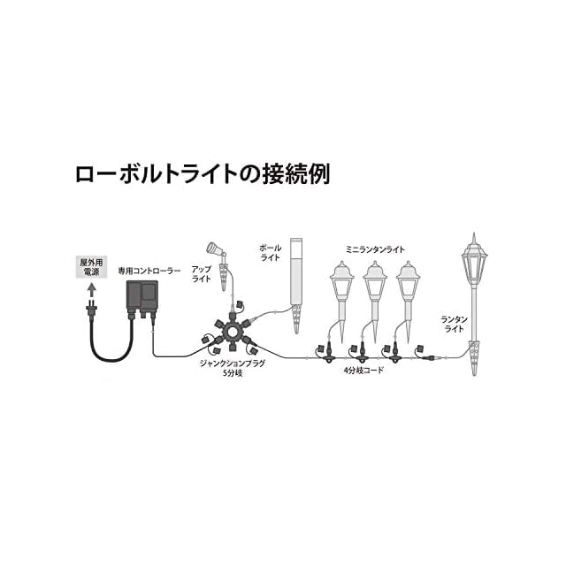 タカショーローボルトガーデンライトシリーズにつき消費電力24.5Wまで連結可能。
