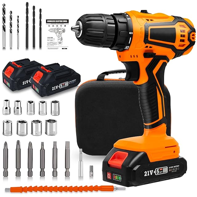 電動ドライバー ドリル 21v 1500mAh バッテリー2個付き (マキタ バッテリーに対応) 25段階トルク調節 最大32N.m スピード調節機能 正逆転切替 穴あけ 電動工具セット 21ドリル/收纳ケース付き DIY初心者でも使いやすい | Trend Design BASE店