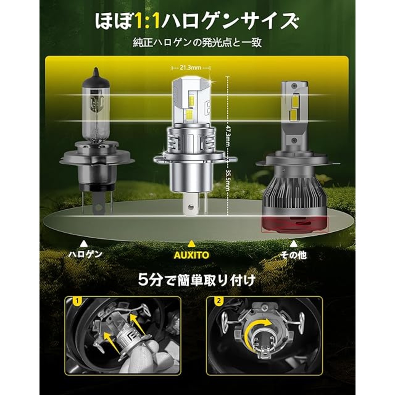 商品名:AUXITO H4 Lo/Hi LEDヘッドライト 高輝度 24個LEDチップ搭載 6倍明るさUP 車用 車検対応 ほぼ純正ハロゲンサイズ 6500K ホワイト 12V車対応 取り付け簡単 定電流回路搭載 長寿命 高速回転冷却ファン付け 静音 瞬間起動 2個入り 販売者3年-M6SH4