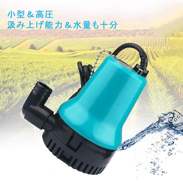 製品仕様 入力電圧:12V 入力電流:5.4A 吐水量:約70L/分(4.5㎥/時間) 全揚程::3 ~5m 海水対応:可 使用水温:0-60度 重量:1kg 吐水口口径:25mm 電源コードの長さ:2.5M サイズ:16cm(H)X15cm(W) セット内容 ポンプ本体 エルボ ワニクリップ 散水ノズル 配水管バックル(2個) 日本語取扱説明書