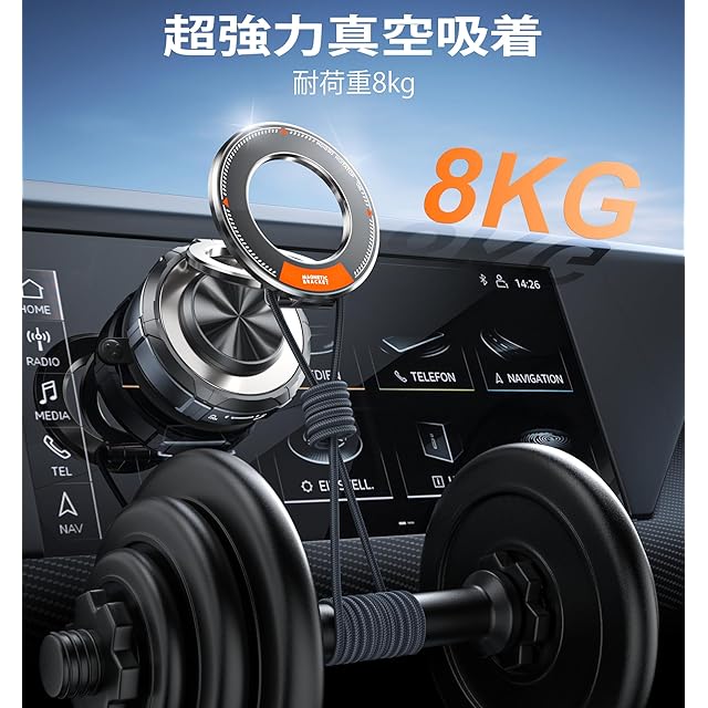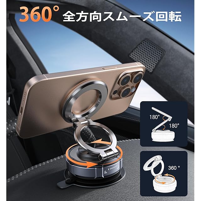 商品名:スマホホルダー 車 マグネット,Hohosb 亜鉛合金 真空吸盤&強力マグネットfor Magsafeに対応,多角度自由調節 360°回転な台座 マグセーフ 車/ジム/ミラー/シャワー用 携帯スタンド iPhone&Android多機種と多車種が対応