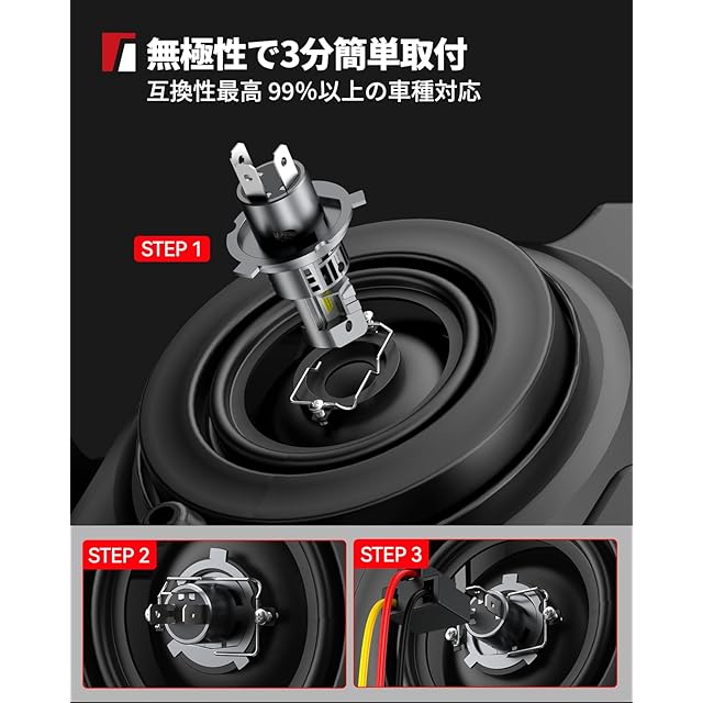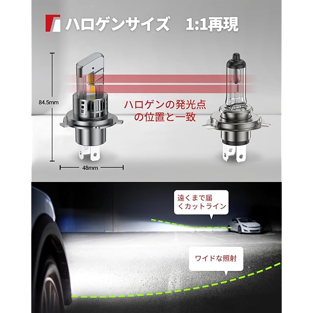 【1:1サイズ&ポン付け】1:1のサイズで純正フィラメントと同位置での発光を実現していますので、ジムニーなどの車種でもポン付けできました、H4 LED 車検対応は99%の車種適用できます。さらに、無極性設計により、正極と負極の区別なく接続できるし、コネクタを差し込むだけ、初心者の方でも、自宅で簡単に取り付けが可能です。数分で完了する手軽さで、誰でもすぐに明るい視界を手に入れられます!