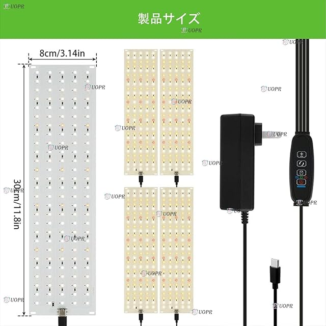 商品名:4pcs LED植物育成ライト 調光可能 植物成長ライト 暖色系 四枚パネルライト 超薄型 フルスペクトル 育苗ライト 24hサイクル 3h/9h/12hタイマー付き植物ライト 設置簡単 室内用 水耕栽培 多肉 野菜 植物工場など適合する